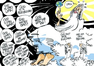 Also, are you a Republican, Democratic, or Independent deity? In other words, we all want to know how Jesus would vote. I get the idea from Scriptures that we might all be sorely disappointed with Jesus if he were to run for office. We all, however, would like his endorsement of the ‘right’ candidate. It would make voting a whole lot easier. And, with that information we could shout, “IN YOUR FACE!” when the election results were announced.